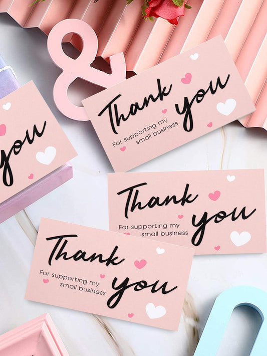 50pcs Thank You Cards Small Business, Set of 50 Pink Thank You, Slogan Graphic Thank You Card, Perfect for Small Business Owners, design one face