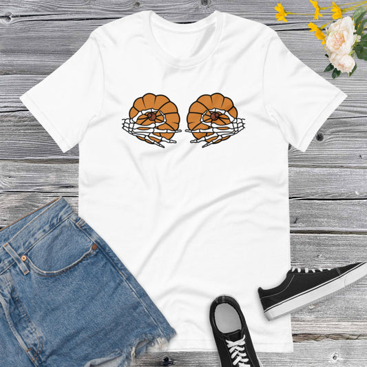 Pumpkin Boobies Shirt, Skeleton Hands Shirt, Funny Halloween Shirt, Thanksgiving Boobies Shirt, Skeleton Unisex t-shirtUnisex t-shirt