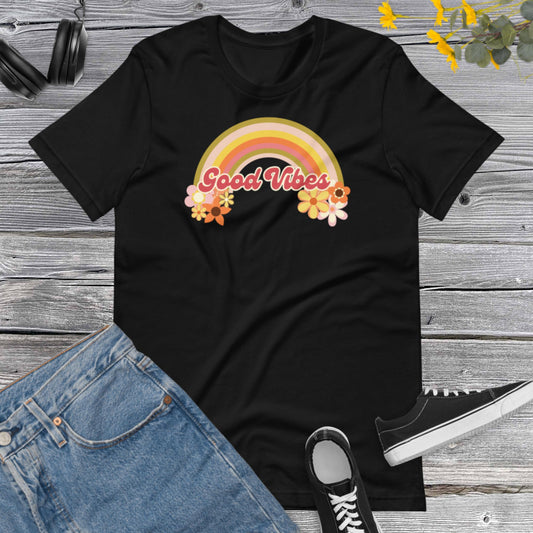 Retro Good Vibes Flowers, Raimbow flowers, Vintage Raimbow, Inspirational Positivity Shirt, Positive Feelings Unisex t-shirt