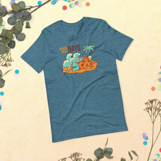 Beach Best Days Skeleton, Funny Summer shirt, Skeleton on the beach funny, Happiness, Unisex t-shirtUnisex t-shirt