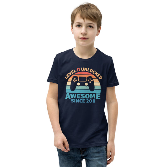 Retro Vintage Level 11 Unlocked t-shirt, 11th Birthday, Video Game shirt, Video Game Controller Joystick, Youth Short Sleeve T-Shirt