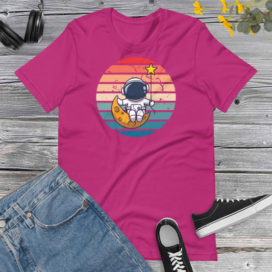 Astronaut sitting Moon Star, Astronaut Shirt, Funny Spaceman Moon, Outer Space Shirt, Space Theme Party, Space Birthday Unisex t-shirt