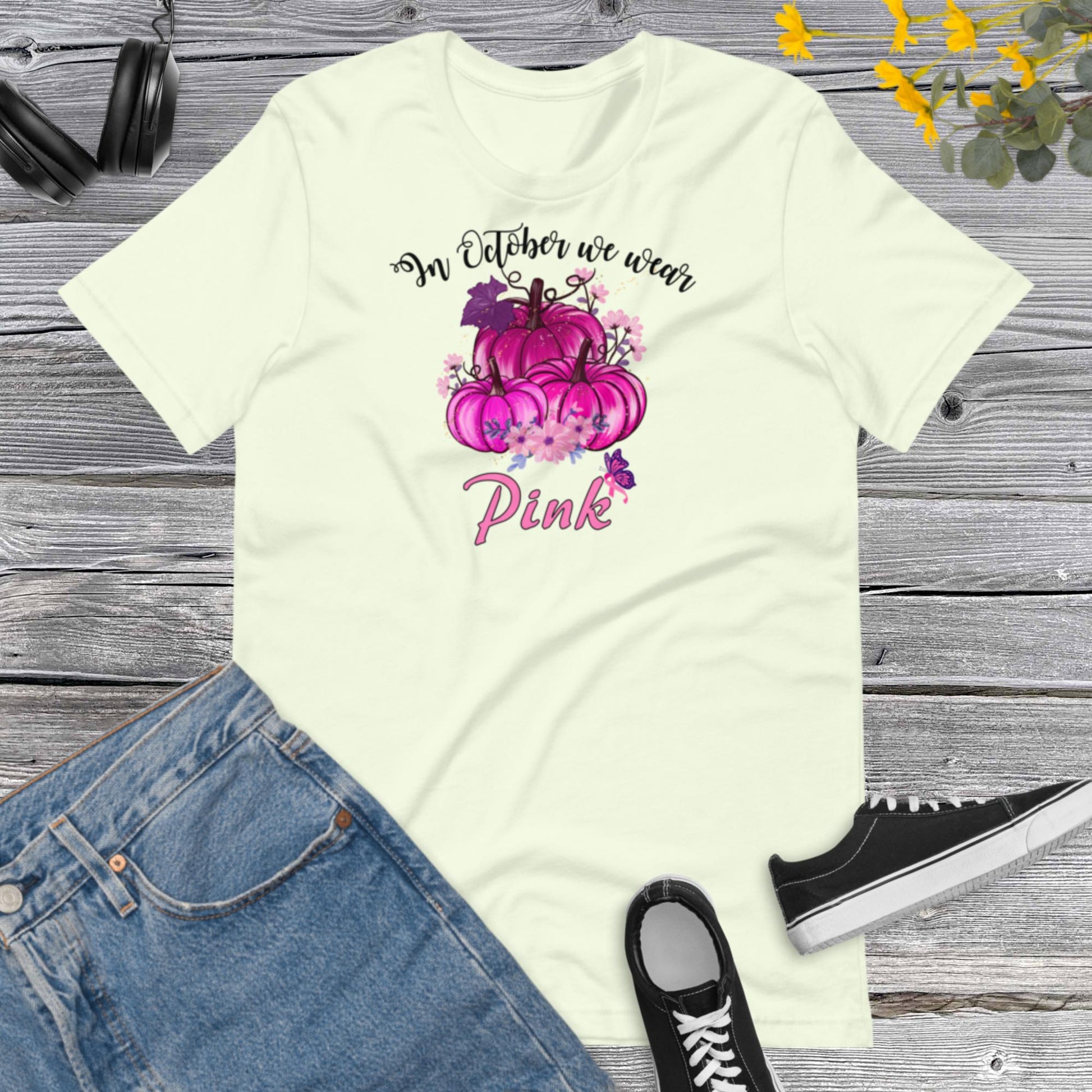 In October we wear Pink, Pink Pumpkin, Watercolor, Pink October, Autumn Fall Breast Cancer Awareness Unisex t-shirt