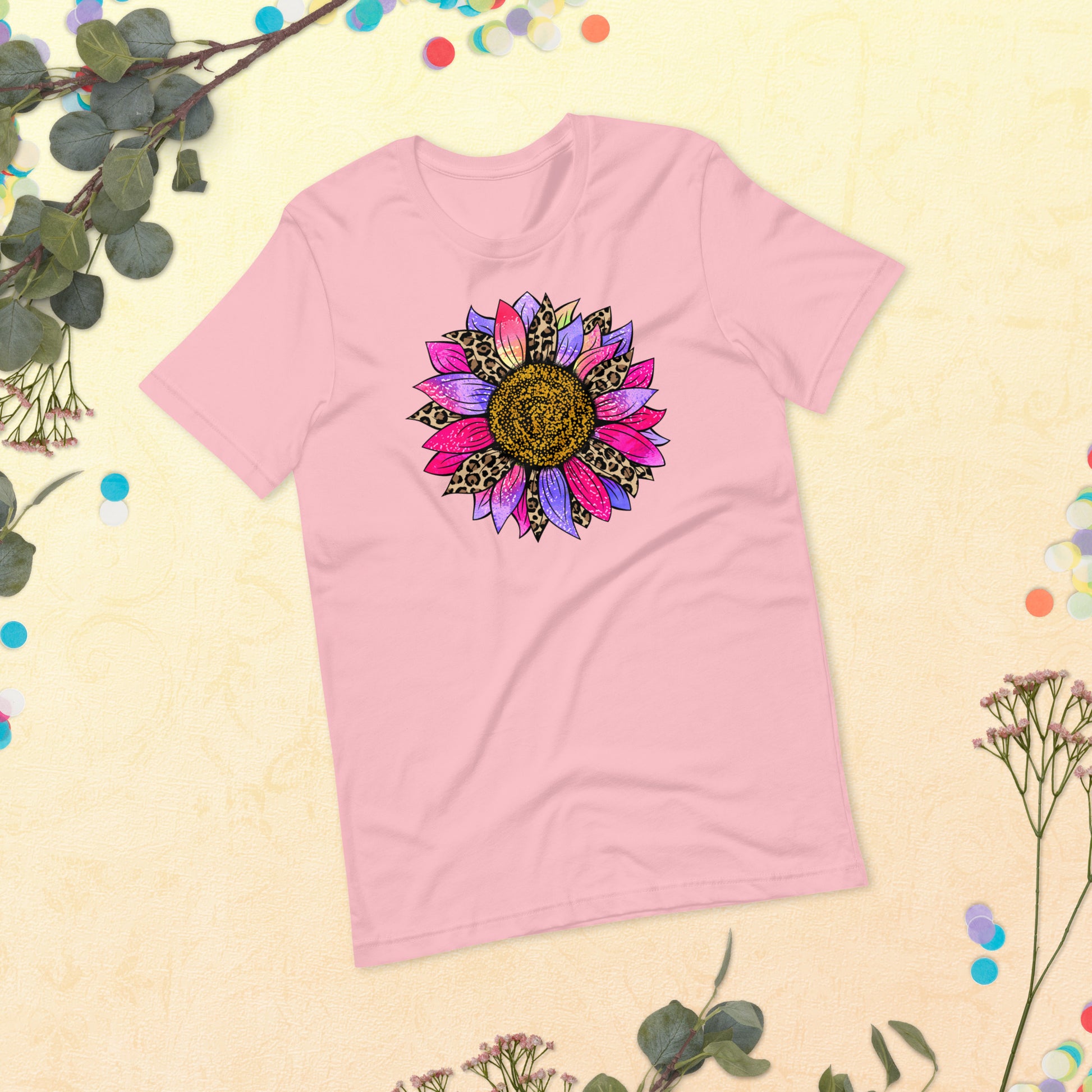 Leopard Sunflower Colorful, Sunflower Shirt, Flower Shirt, Daisy, Roses, Nature, Wildflower, Inspirational Unisex t-shirt