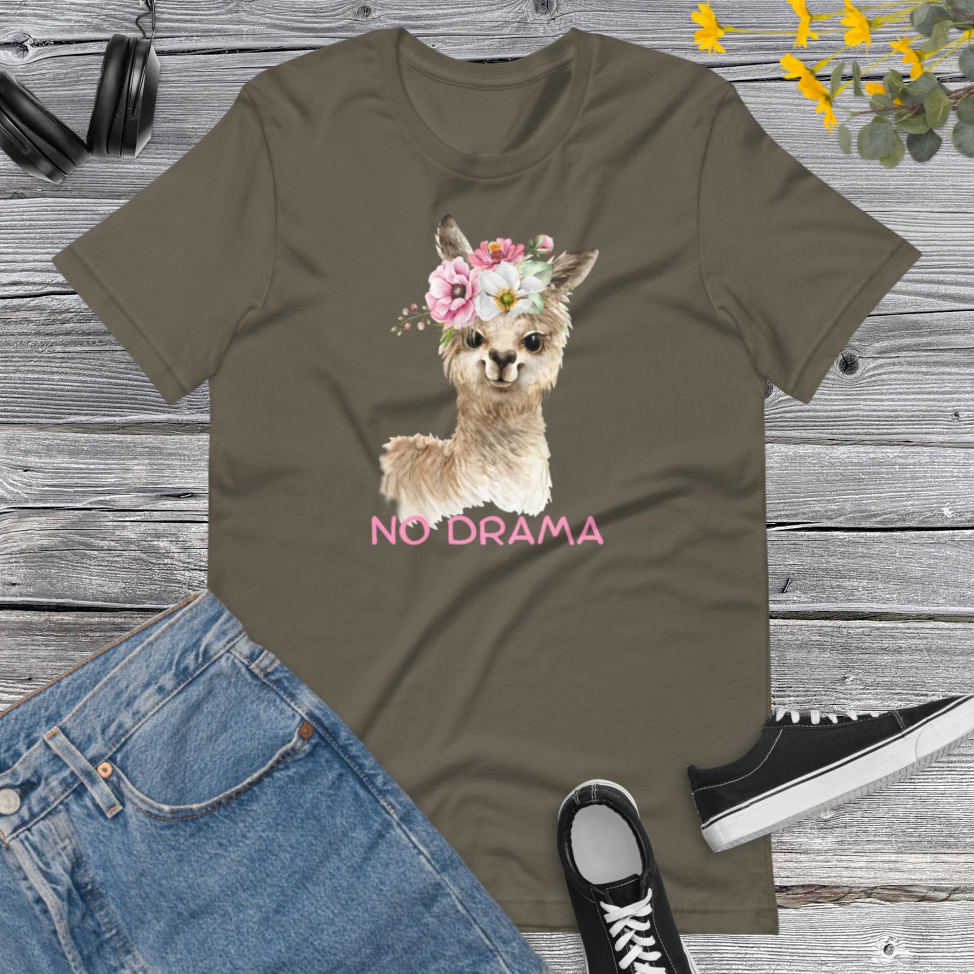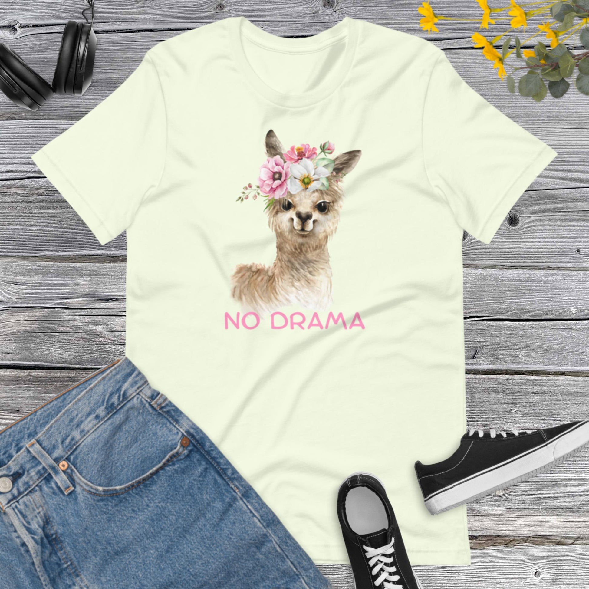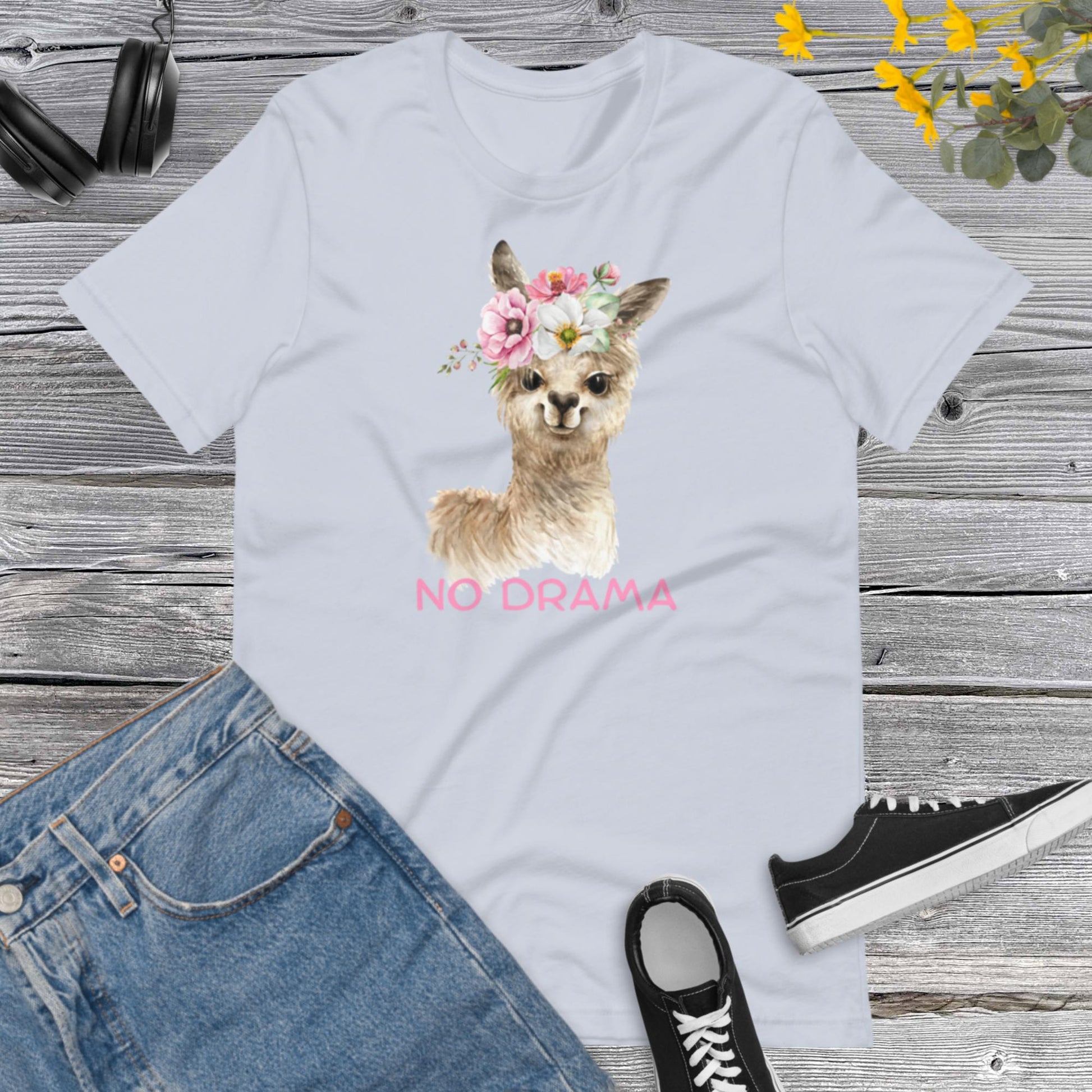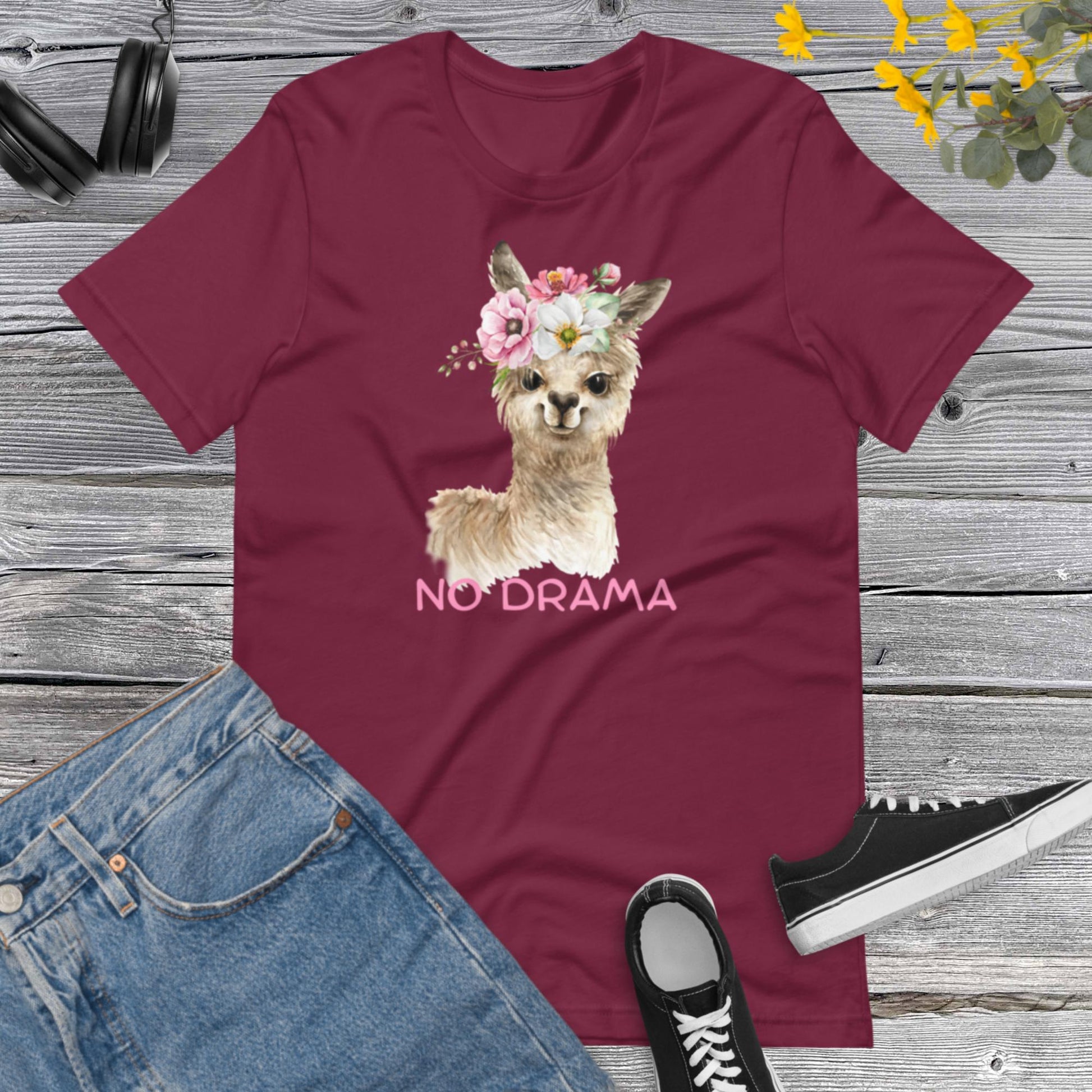No Drama LLama Shirt, Drama Queen Shirt, Drama Girl Shirt, Flowers Llama Shirt, Funny Shirt, Don't Drama Please Unisex t-shirt