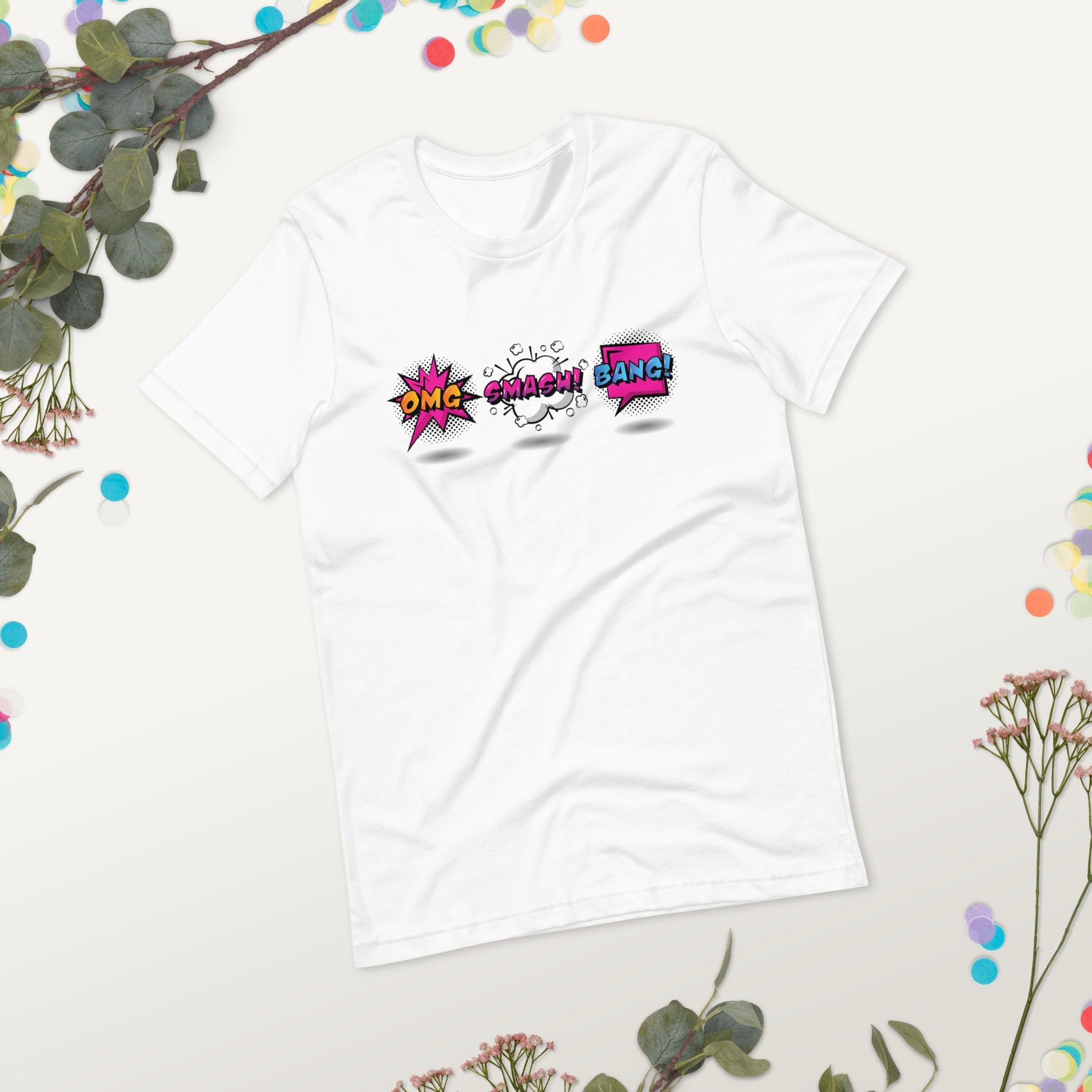 Retro Comic Style Pop Art OMG, SMASH, BANG, Retro Comic Style, Retro Party T-shirt, Unisex t-shirt