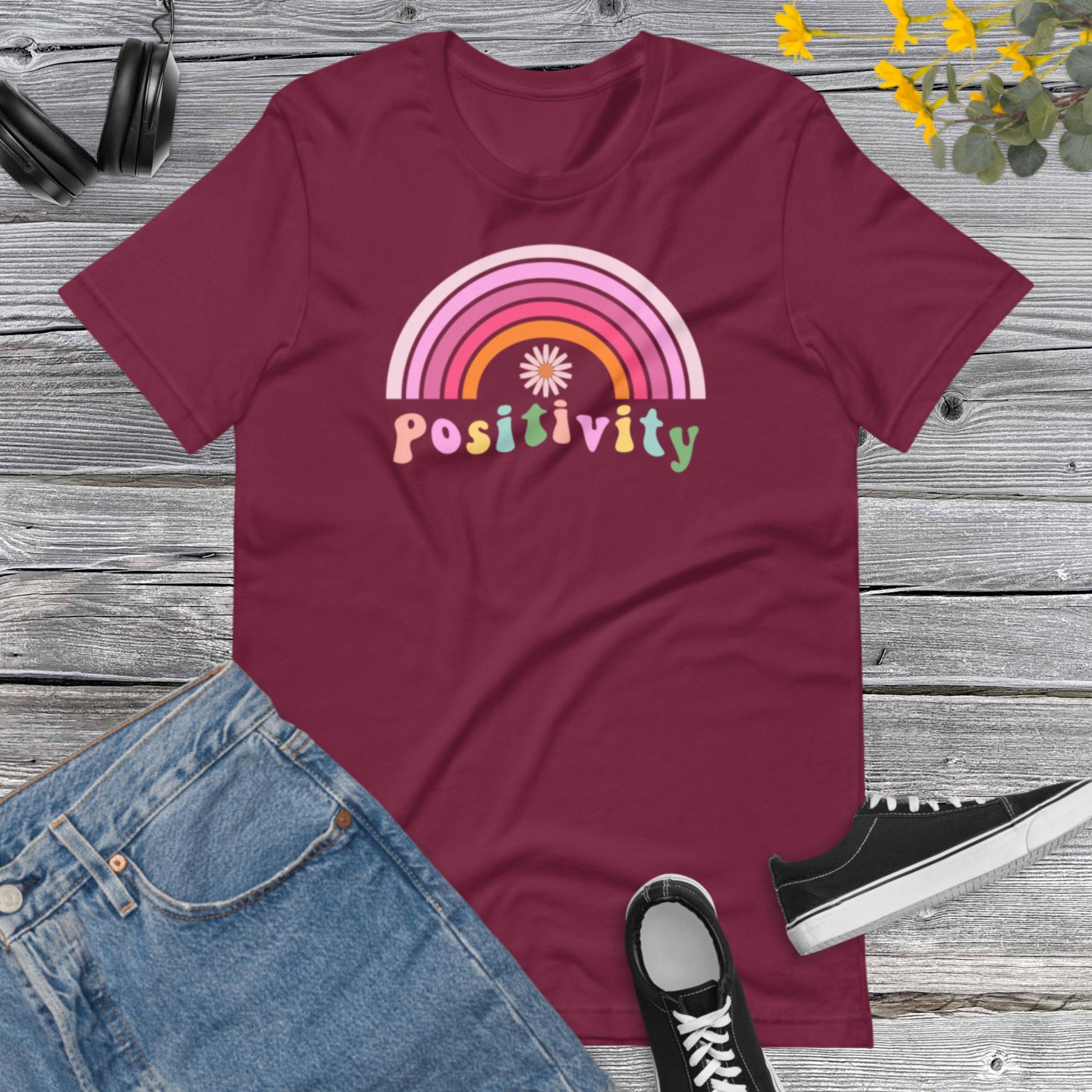 Retro Positivity shirt, Rainbow Inspirational shirt, Positive thinking, kindness shirt, Cute women apparel, Rainbow flower Unisex t-shirt